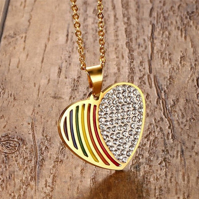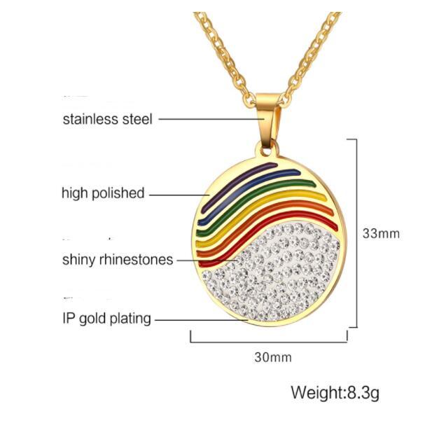This necklace is a bold canvas for your vibrant spirit. The pendant features a horizontal stripe design in all the colors of the iconic Pride flag, a powerful symbol of love, acceptance, and the LGBTQ+ community's unwavering fight for equality. Made from high-quality materials, this necklace is more than an accessory - it's a statement piece. Wear your Courageous Canvas necklace with pride and let the world know you are a masterpiece of color and courage.